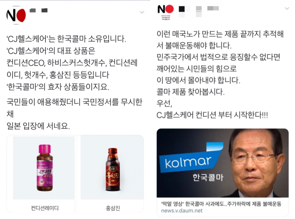 게다가 이 유튜브 상에서는 아베는 문재인 면상을 주먹으로 치지 않은 것으로도 대단한 지도자라는 등의 찬양성 발언이 포함되면서 친일논란까지 겹쳐지고 이 논란으로 한국콜마가 일본콜마와 합작해서 만든 법인이라는 것이 알려졌습니다. 국민감정이 일본에 좋지 않았던 와중에 한국콜마의 기업 이미지는 직격탄을 맞이하게 되었습니다.