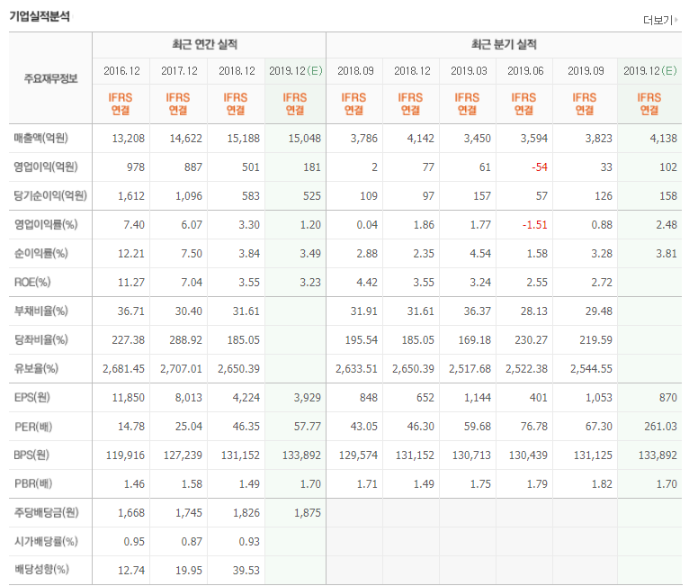 2020년에는 매출이 1조 5750억 원이 예상되며 영업이익은 707억 원이 예상됩니다. 현재 주가는 22만 원선에 거래가 되고 있는데 기업의 건실함에 비해서 상당히 저평가되어 있는 주식이 아닌가 생각됩니다.